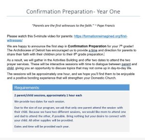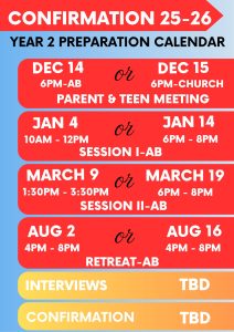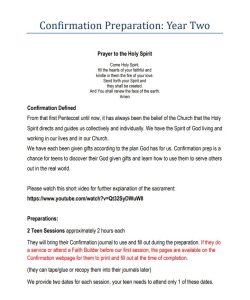 For young people preparing for Confirmation ~ it is an invitation to say, “YES” to the spirit. We hope to lead the young disciples into a closer relationship with God, while preparing them to understand and use their gifts in order to live out their apostolic callings.